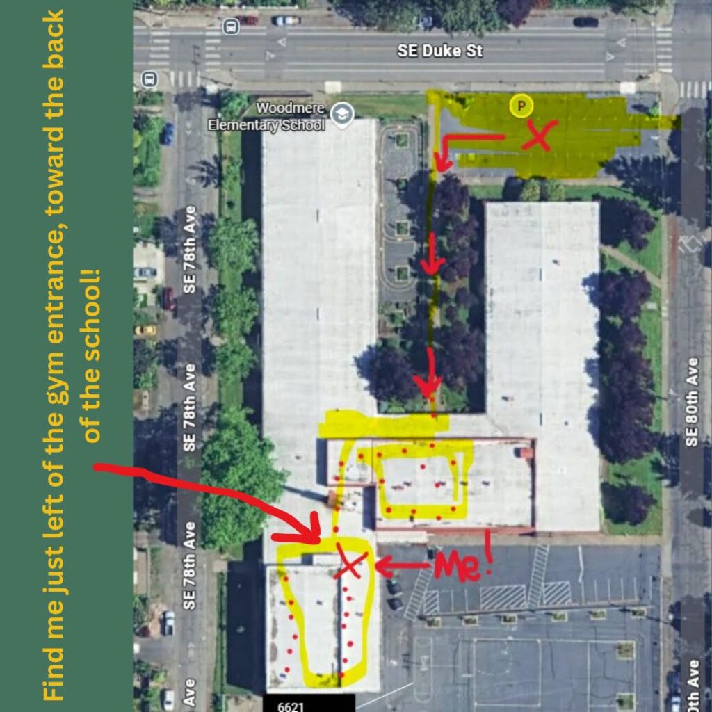 The entrance is down the steep ramp at the end of the grey building, (to the east), by the monthly paid parking lot. (Parking for us is on street only sorry, so plan a little time to hunt for a spot as we vendors are going to be using the closest spots to set up.) It’s right off of SE Stark, and Grand. Close to the streetcar, if that helps at all.